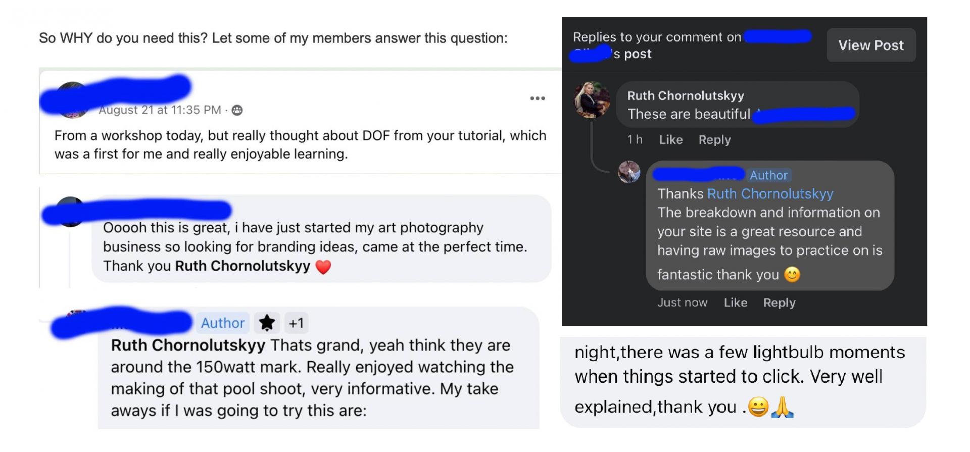 A Community via our Facebook group so you can make connections with other photographers and gain daily inspiration and we can all support and help each other in our photography journey.